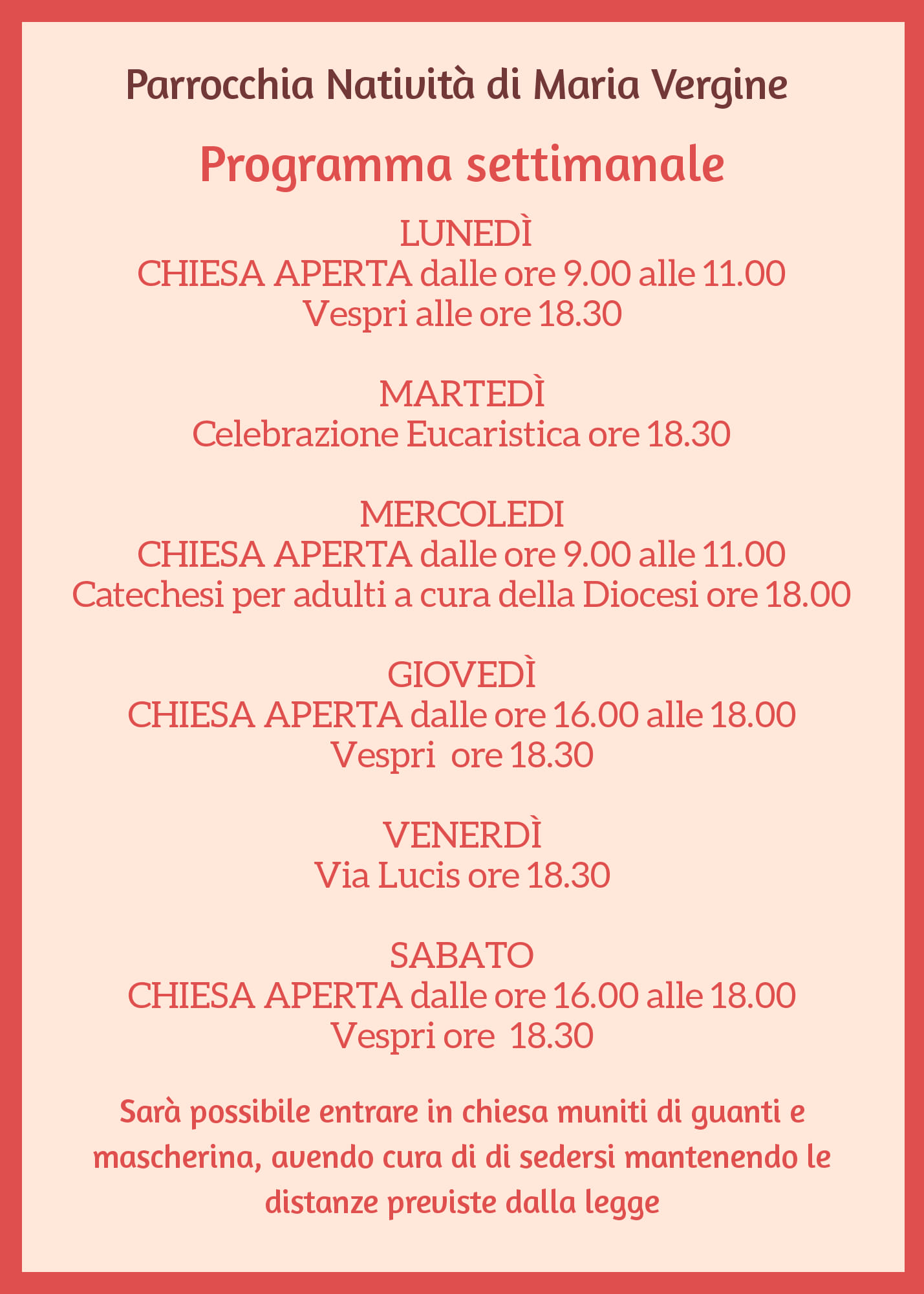 PARROCCHIA NATIVITÀ DI MARIA VERGINE- COLLI DI FONTANELLE "Per favore, andiamo avanti con le norme, le prescrizioni che ci danno, per custodire la salute di ognuno"( Papa Francesco) Carissimi, accogliendo l’invito del Santo Padre vi forniamo il protocollo per la partecipazione alle Celebrazione Eucaristica…