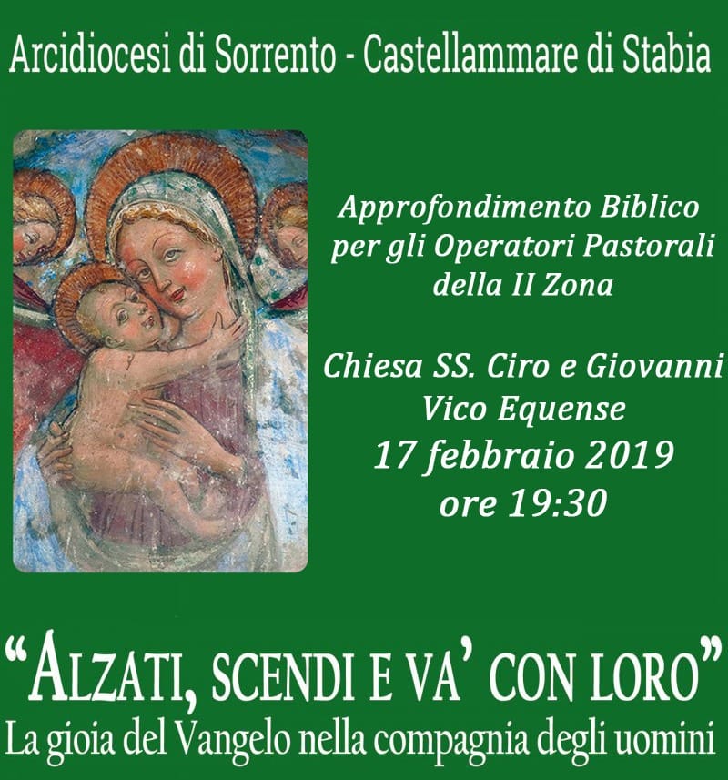 "Alzati, scendi e va' con loro" -Tutti insieme per un momento di riflessione- Trattasi di un incontro di approfondimento biblico aperto a tutti gli operatori pastorali della nostra Unità Pastorale (II Zona). Tutti siete invitati. Non mancate!!!